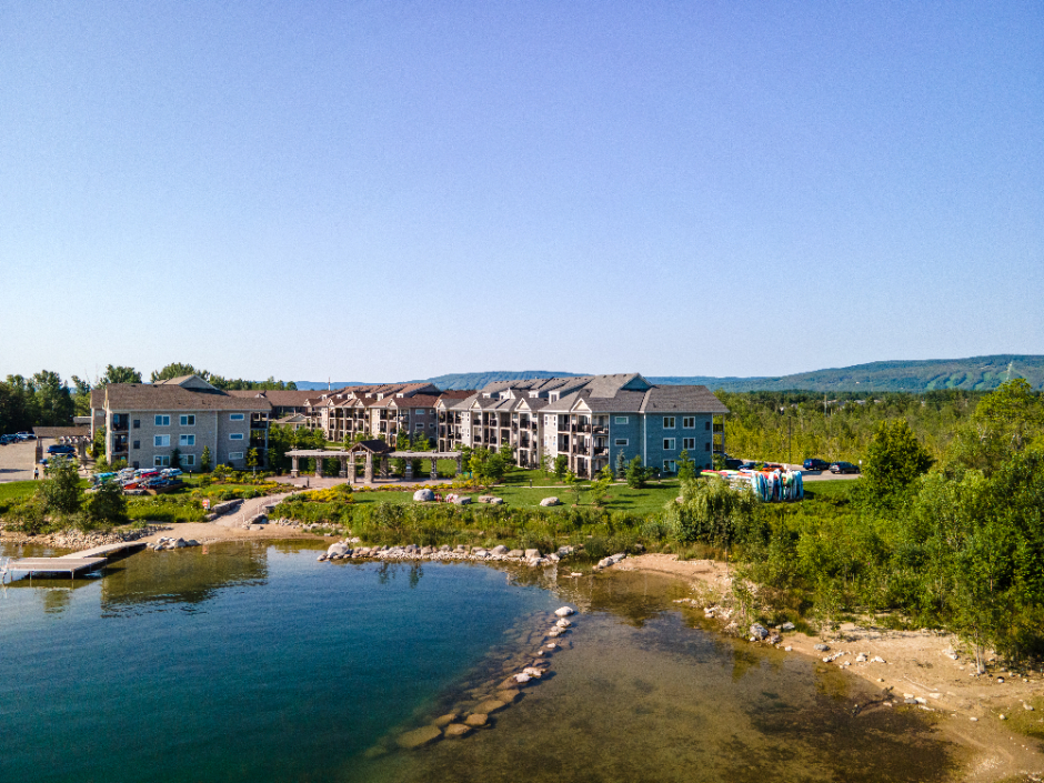 Wyldewood Cove is a gorgeous, intimate community set on the shore of Georgian Bay and located in the beautiful four-season destination Collingwood, Ontario. Stay and play this upcoming winter in this beautiful and cozy 3 bed + 2 bath condo is situated on a 15 acre nature reserve. Includes access to a fitness facility and year round outdoor heated pool to unwind after a day on the slopes.